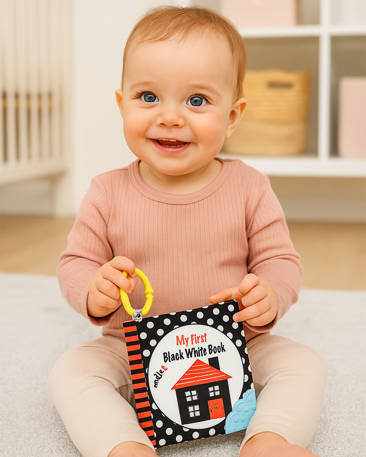 İlk Siyah Beyaz soft kitabım, renkli ve dokulu sayfalarıyla bebeklerin duyusal ve bilişsel gelişimine katkıda bulunur. Keşfetme isteklerini teşvik eder ve erken yaşta kitaplarla tanışmalarını sağlar.