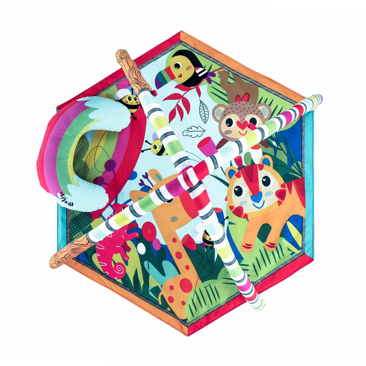 Bebeklerin eğlenceli zaman geçirdiği aktivite oyun halısı 4 adet askılı oyuncak, 3 adet oyuncak askısı ve şekilli oyun zamanı karın yastığı içerir.