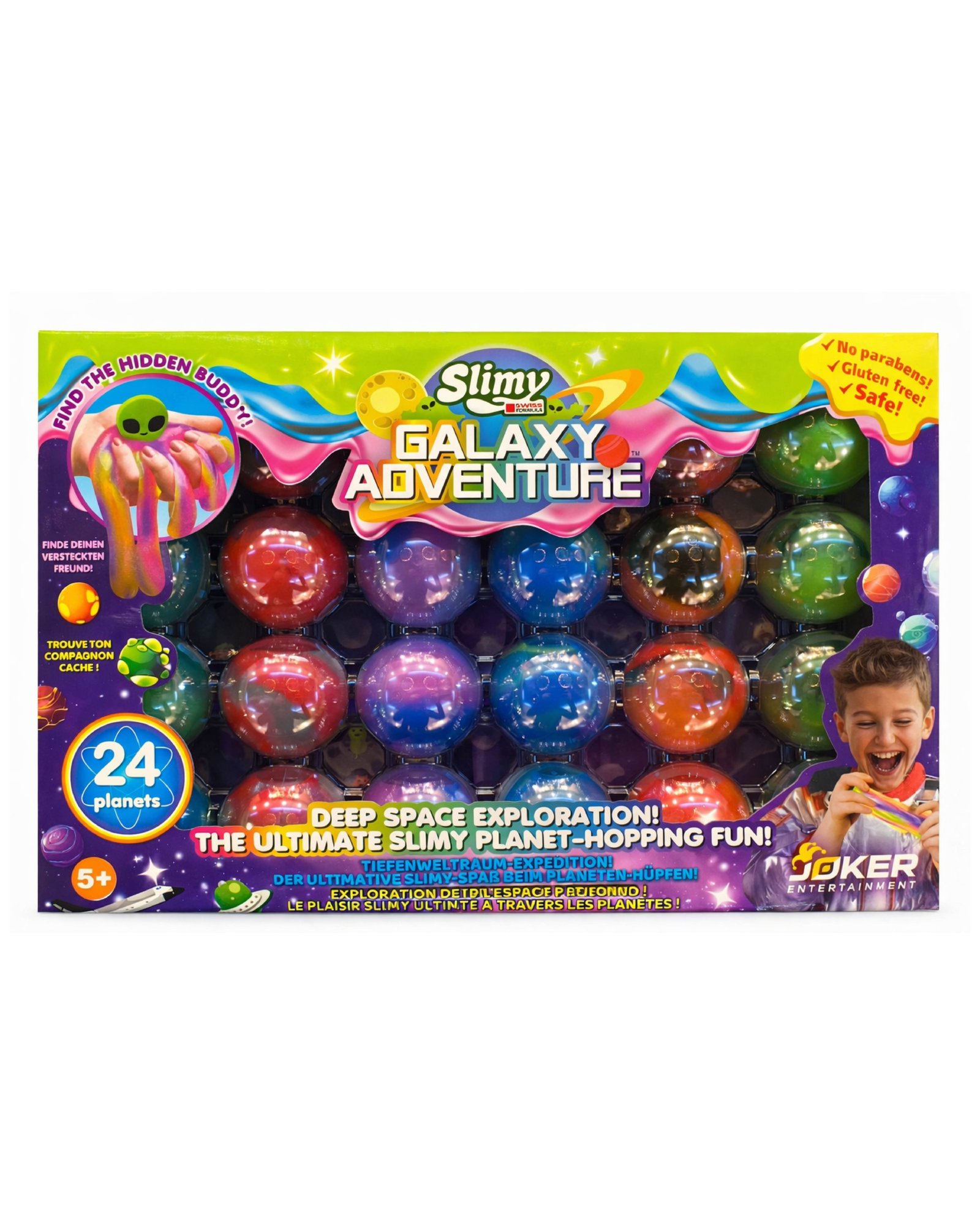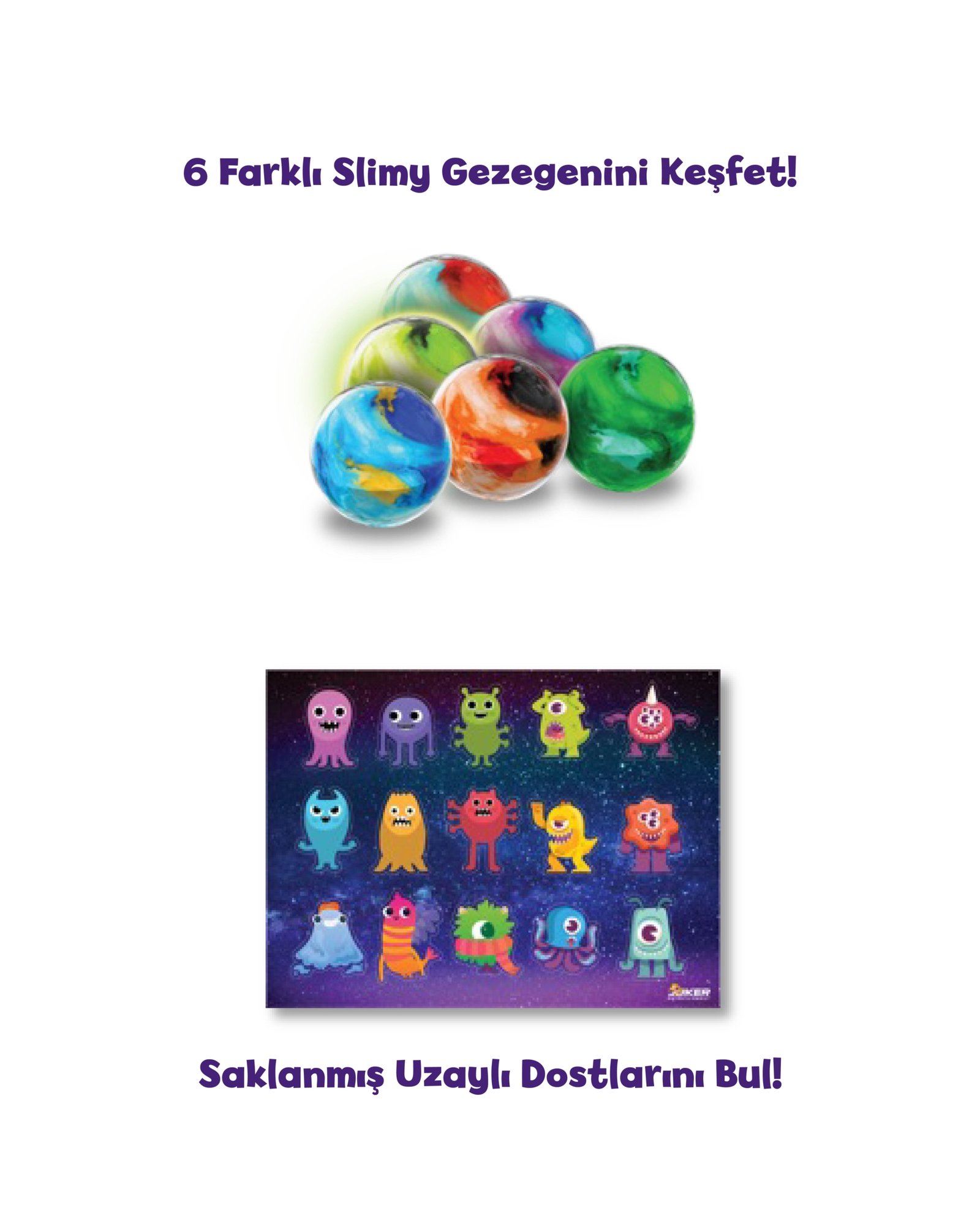 “6 farklı slimy gezegenini keşfet, saklanan uzaylı dostlarını bul!” mottosuyla çocuklar için hem eğlenceli hem keşif dolu bir oyun deneyimi sunar.