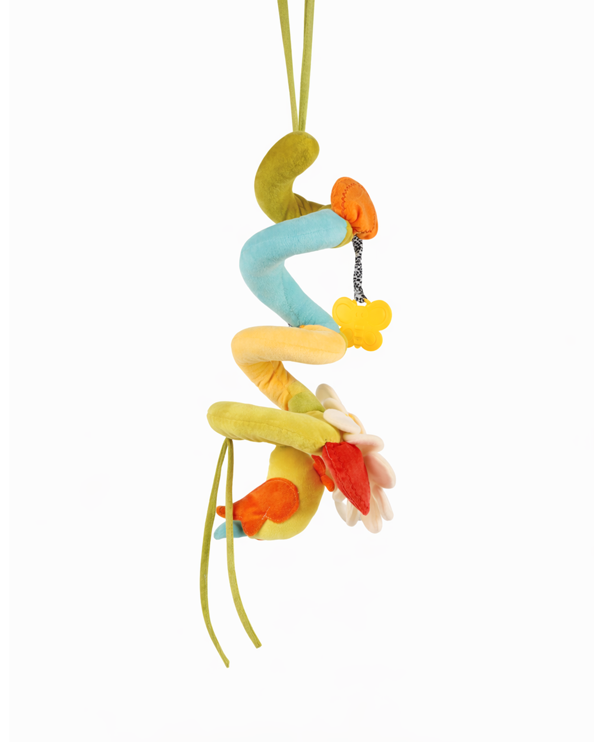 Hareketli ve esnek yapıları sayesinde, spiral oyuncaklar beşik, oyun parkı, bebek arabası ve taşıyıcı gibi çeşitli yüzeylere kolayca takılabilir.
